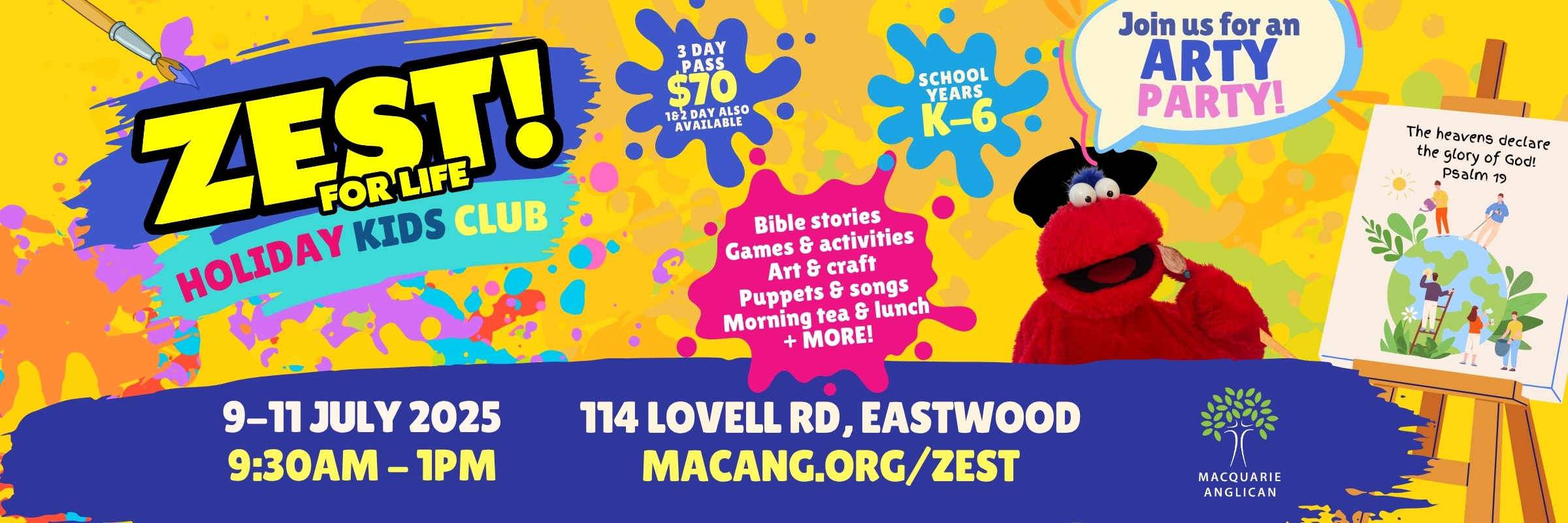 I permit my child to participate in activities associated with Zest For Life Holiday Kids Club (9 July - 11 July 2025) at Macquarie Anglican, unless I advise the Zest leaders otherwise.